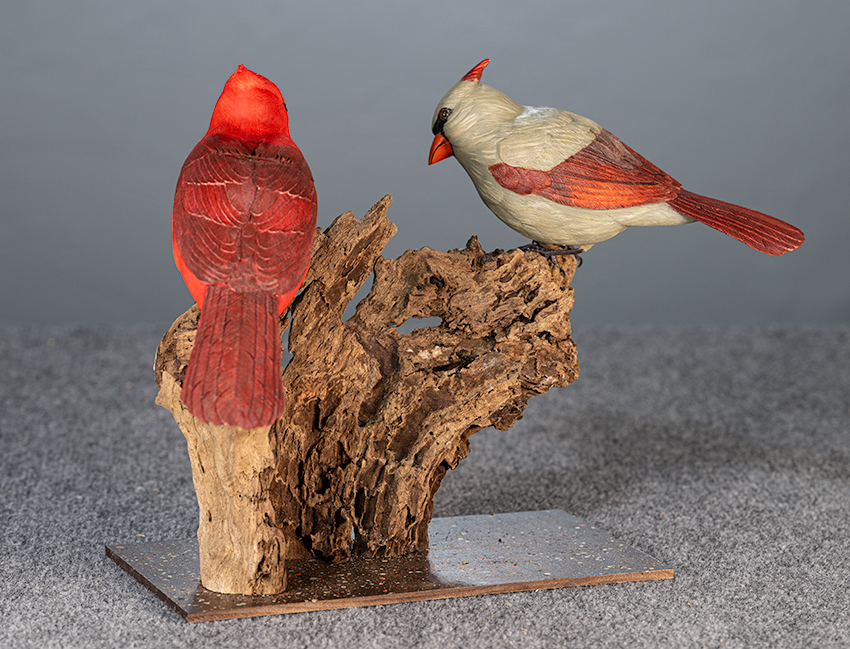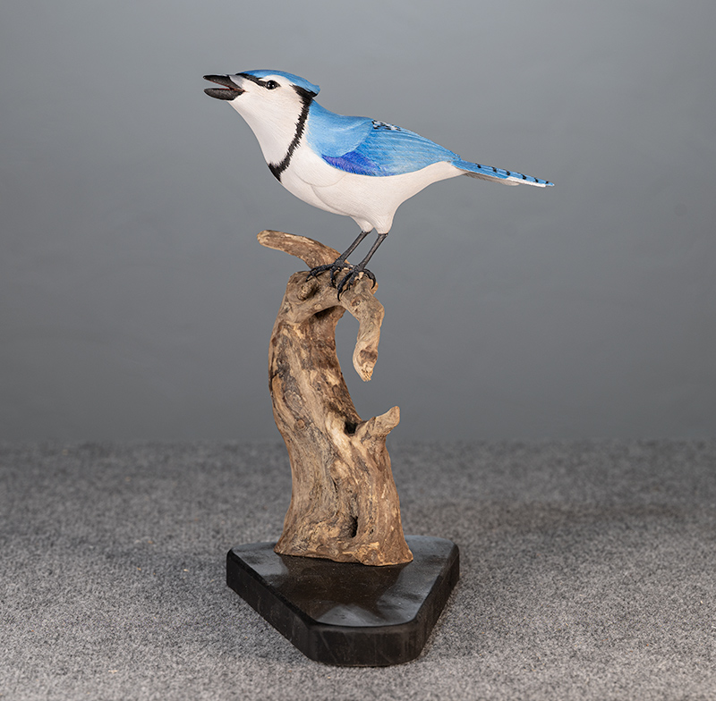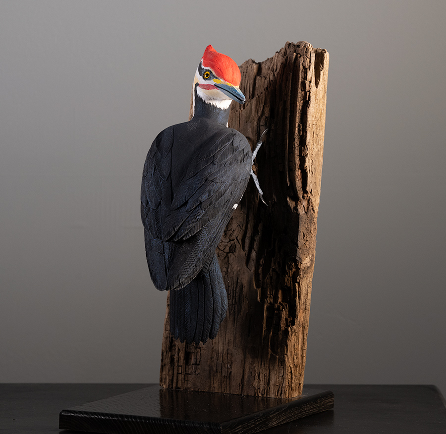After moving to Asheville in 1990 he built a house (and many of its furnishings). Looking for a creative way to use some of the large pieces of wood that remained, he began his first rudimentary attempts at carving. Inspired perhaps simply by a beautiful picture in a book he began a serious hobby that has now endured for over 30 years. After joining a group of local carvers his work improved and his love of creating life size birds unfolded. He says, “I am